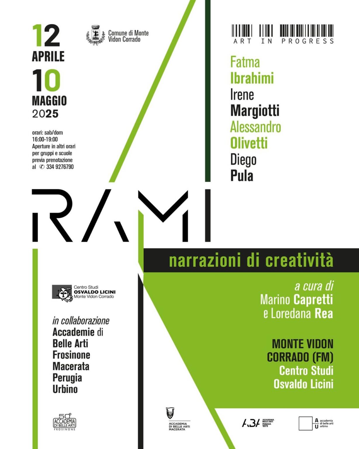Come ogni anno, anche in questa primavera, le Accademia di Belle Arti si sono ritrovate al Centro Studi Osvaldo Licini per la consueta mostra Art in Progress dedicata ai giornali studenti delle istituzioni artistiche. Rami. Narrazioni di creatività, è il titolo di questa IV edizione, che ribadisce la fertile sinergia tra le istituzioni accademiche e gli enti museali con l’obiettivo di costruire delle opportunità di esperienza, visibilità e promozione per le nuove generazioni di artisti ancora in formazione. Fin dal titolo, Rami, si è voluto richiamare il carattere dinamico dell’energia giovanile in espansione, la tendenza ad articolarsi e intrecciarsi con ciò che li circonda; ma i Rami sono anche le traiettorie di crescita dei giovani studenti, tutte in divenire.