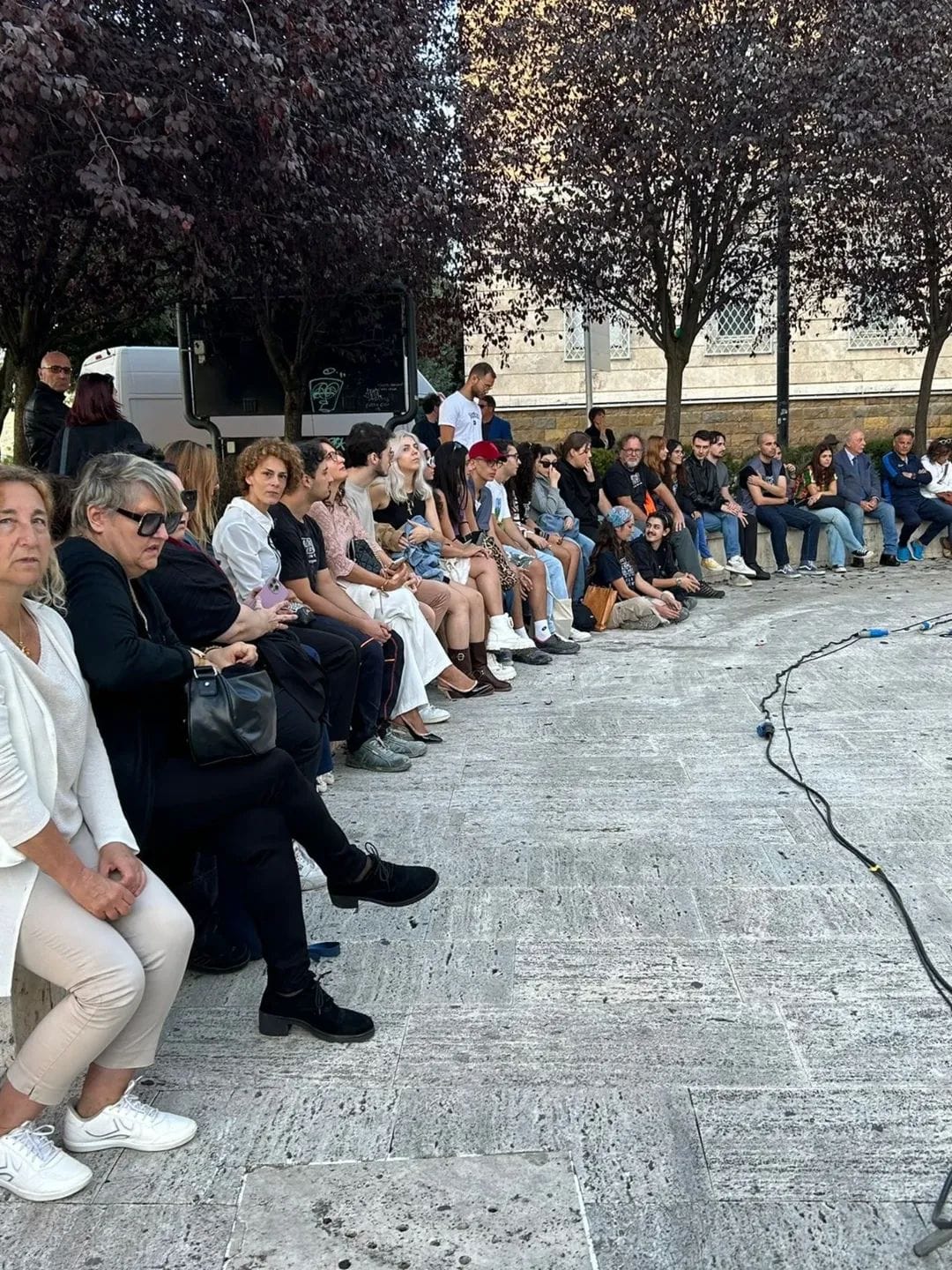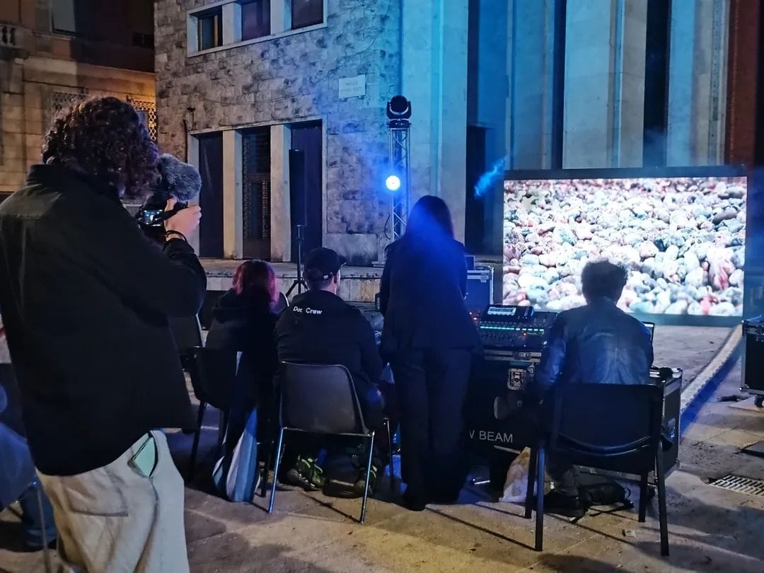 La prima opera, Ciociaria, è un omaggio e un’indagine sulle radici: canti popolari e ninne nanne contaminate da sonorità elettroniche costruiscono un affresco sonoro tra ciò che è stato e ciò che resta. Sulle scalinate dell’Accademia segue Itinera, un viaggio tra i paesaggi sonori contemporanei: dai mercati di Molfetta al Cimitero Monumentale di Milano, dalle cave di Carrara al paesaggio metafisico dell’Etna. A chiudere il cerchio in Piazza Turriziani è stata Nemorra: un paesaggio inquieto, popolato da voci di figure note, immerse in una selva, tra ruggiti e caos…